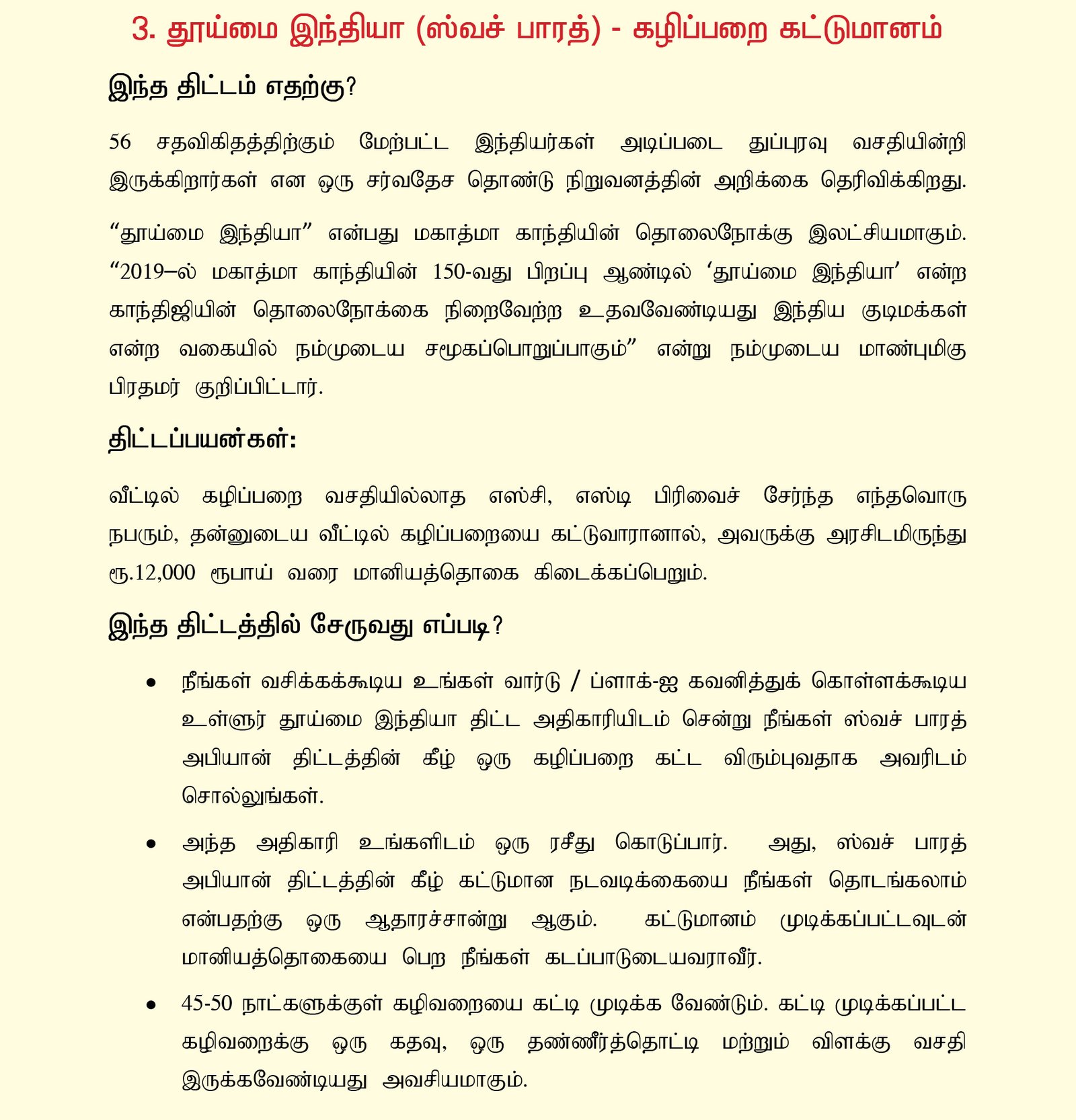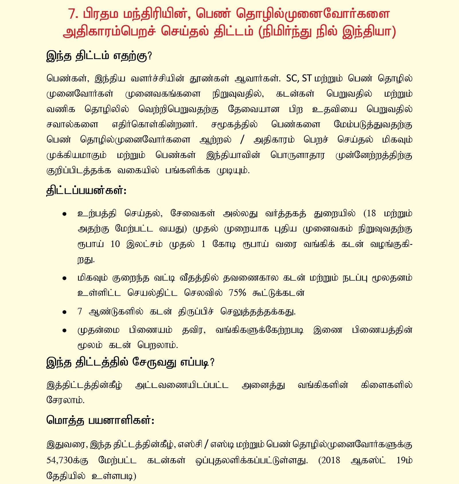 பெண்களை அதிகாரம் பெறச்செய்தல் (பெண்களுக்கு அதிகாரம் வழங்கல்): 2011 ஆம் ஆண்டு மக்கள்தொகை கணக்கெடுப்பின்படி நம் மொத்த மக்கள்தொகையில் 48.5 சதவிகிதம் பெண்கள் ஆவார்கள். ஒரு பெண் அதிகாரம் ஃ ஆற்றல் பெறச் செய்யப்படுவாரானால் ஒரு நாடே அதிகாரம் பெற்றதாகும். பெண்கள் குடும்பத்தை மேம்படுத்துவதோடு மட்டுமல்லாமல் நாட்டையும் மேம்படுத்துகிறார்கள். 'பெண்கள் அதிகாரம் பெறச் செய்தல் மற்றும் பெண்கள் தலைமையிலான வளர்ச்சி" சார்ந்த நாடு மட்டுமே மாற்றமடைய முடியும் என்று மாண்புமிகு பிரதமர் மோடி நம்புகிறார். பெண்களை அதிகாரம் ஃ ஆற்றல் பெறச்செய்வதற்காக பெண்கள் நலத்திட்டங்கள் பல தொடங்கப்பட்டுள்ளன. வரலாற்றில் முதல் முறையாக உலகிலேயே பெண்களை அதிகாரம் பெறச்செய்வதற்காக பல நலத் திட்டங்களை நடைமுறைப்படுத்திய முதல் நாடு இந்தியா ஆகும்.