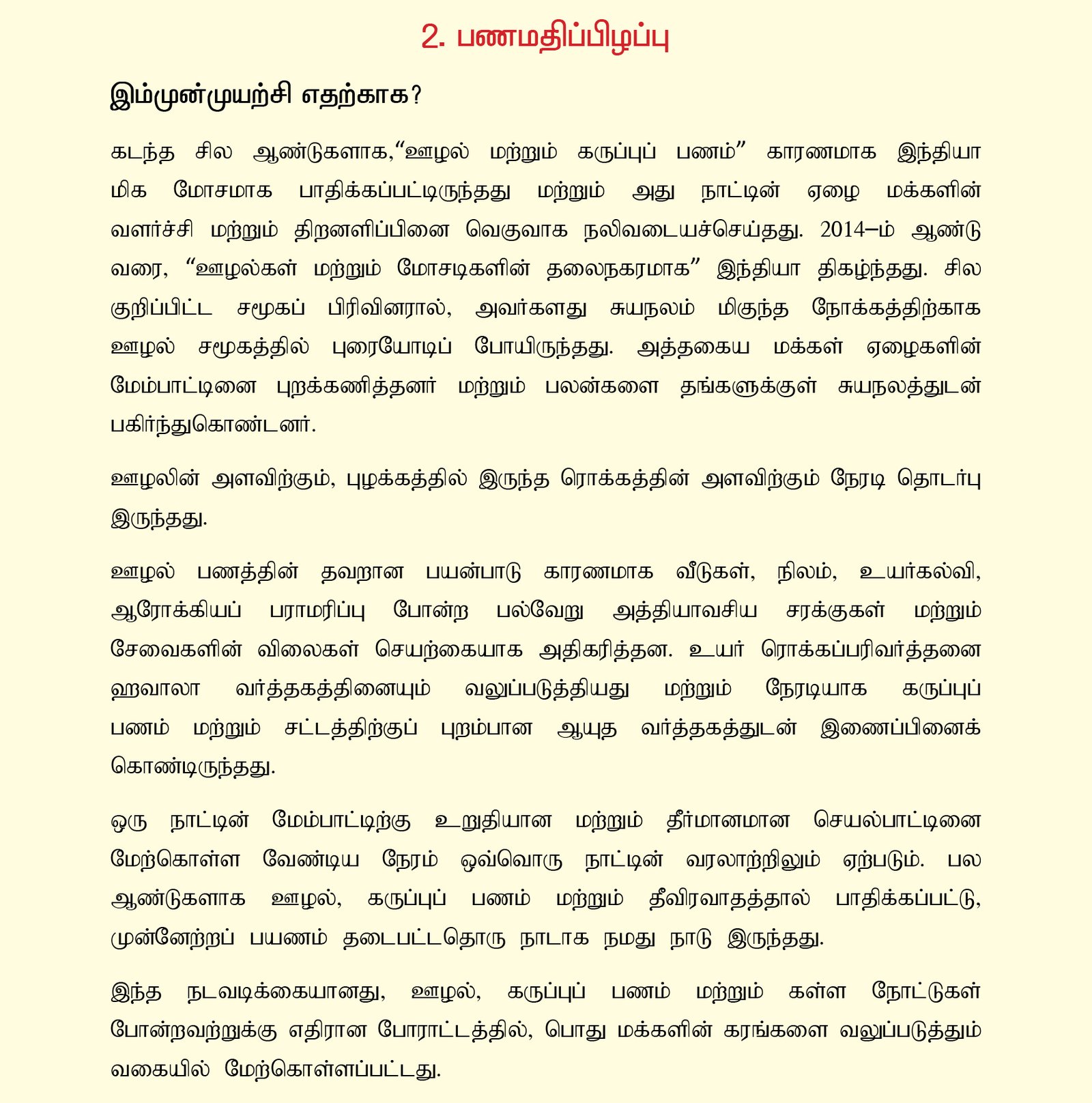 அத்தகைய மேம்பாட்டினை கூர்நோக்கமாகக் கொண்ட முன்முயற்சிகளை புரிந்துகொள்ள வேண்டியதும் மற்றும் தேச மேம்பாட்டிற்கான பங்களிப்பினை வழங்க வேண்டியதும் ஒவ்வொரு குடிமகனின் கடமை மற்றும் பொறுப்பாகத் திகழ்கிறது.
